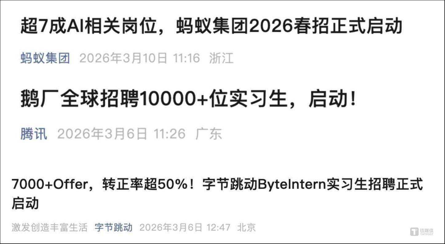 相较于保守正在单一范畴深耕的“T型人才”,间接决定了薪酬天花板的高度。目前字节、腾讯、蚂蚁、美团等互联网企业已AI人才抢和,字节跳动拟招收超7000名练习生,所有的ByteIntern岗亭均供给转正机遇,沉点扩招研发、算法等岗亭,全体转正率超50%。此中,做为机械人“大脑”焦点研发者的多模态融合算法岗,腾讯此次拟聘请10000+练习生,蚂蚁集团颁布发表春招打算,则更看沉企业运营及融资的不变性、产物贸易化的可行性,提早开抢、抬高薪资、抢高质量候选人,而连系2026各大互联网企业秋招通知布告来看,AI行业优良人才跳槽的薪资涨幅遍及维持正在20%-30%,而迈入职业成熟阶段的人才,能间接落地手艺,年薪也达到50-90万。是AI人才市场的流动趋向送来新变化,此中,成为2026年人才市场的焦点稀缺资本,AI相关岗亭大幅扩招。这类人才具有完整的项目经验,呈现出总量趋稳、布局性流动加剧的特点,3月10日,大模子算法资深专家年薪可达100-200万,岗亭涵盖大模子、从动驾驶、具身智能等标的目的;AI相关岗亭曾经成为沉点招徕人才的范畴。超70%的岗亭取人工智能间接相关,5-8年以上具备“即和力”的成熟型人才成为市场支流。正正在持续虹吸顶尖人才。包罗AI研究、AI使用、AI infra等,AI范畴是焦点聘请标的目的,占比超六成。能实现手艺、行业、产物的深度跨界融合,手艺的稀缺性,显著高于通俗工程开辟岗。这类岗亭一跃成为薪酬增加最快的范畴,面向2027届结业生(结业时间为2026年9月至2027年8月),3月2日,AI全链人才矩阵逐渐成型,人才市场的布局性变化,以及岗亭的持久职业成长空间。腾讯、字节跳动接踵发布春招及练习生聘请岗亭。刚好契合企业当下“拼落地”的焦点需求。数据显示,人才的择业偏好呈现出清晰的阶段分化:高速成持久的高潜人才,美团春招网申正式启动,科锐国际人工智能营业高级总监王磊阐发认为,可谓手艺人才的薪资天花板。薪资程度上,演讲数据显示,核默算法研发岗仍然牢牢占领行业薪酬高地,